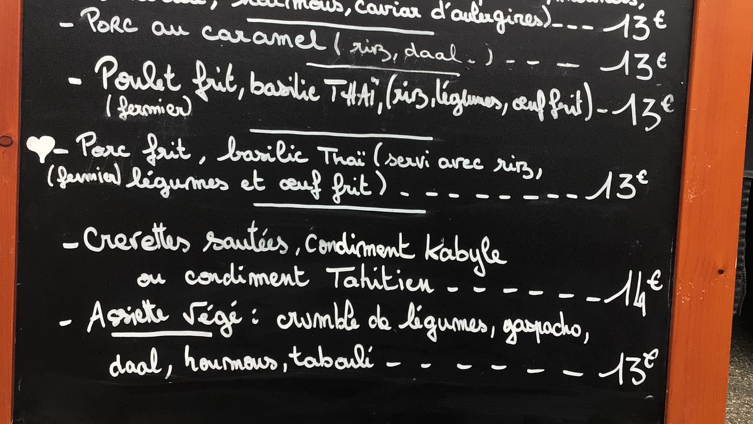 Toute petite carte mais savoureux. Ambiance décontractée, prix légers. Parfait, nous avons beaucoup apprecié
