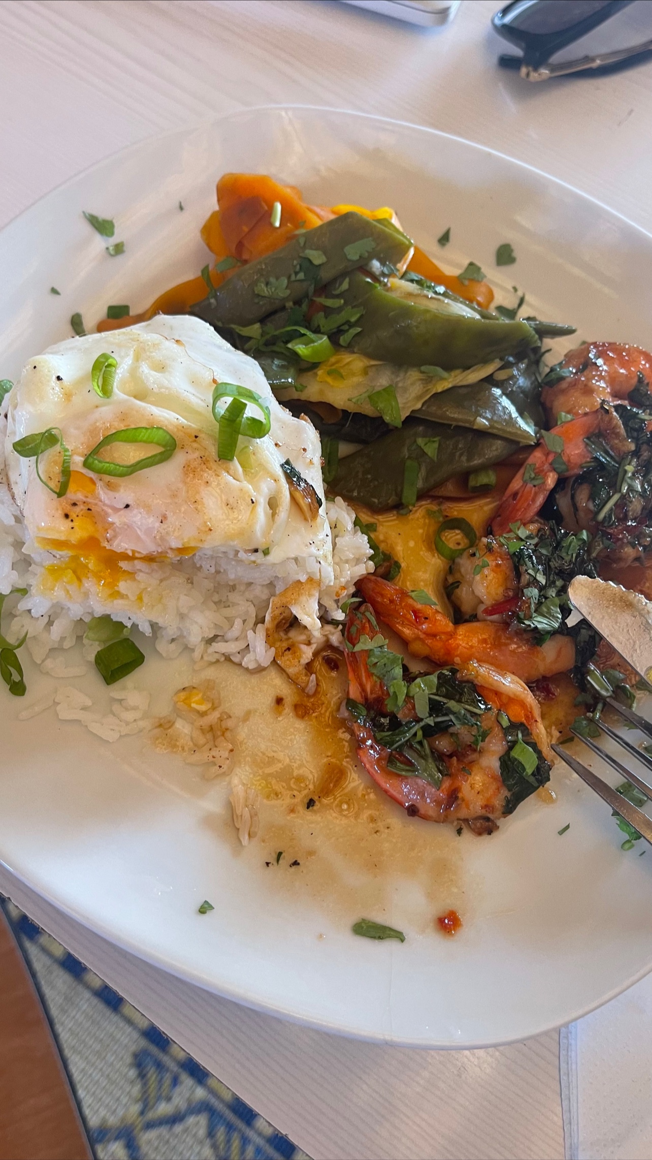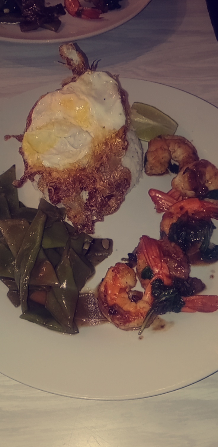 Très bon accueil, une cuisine exotique raffinée fait maison, je le recommande vivement. La photo poulet frit au basilic thaï avec petits légumes, riz œuf frit