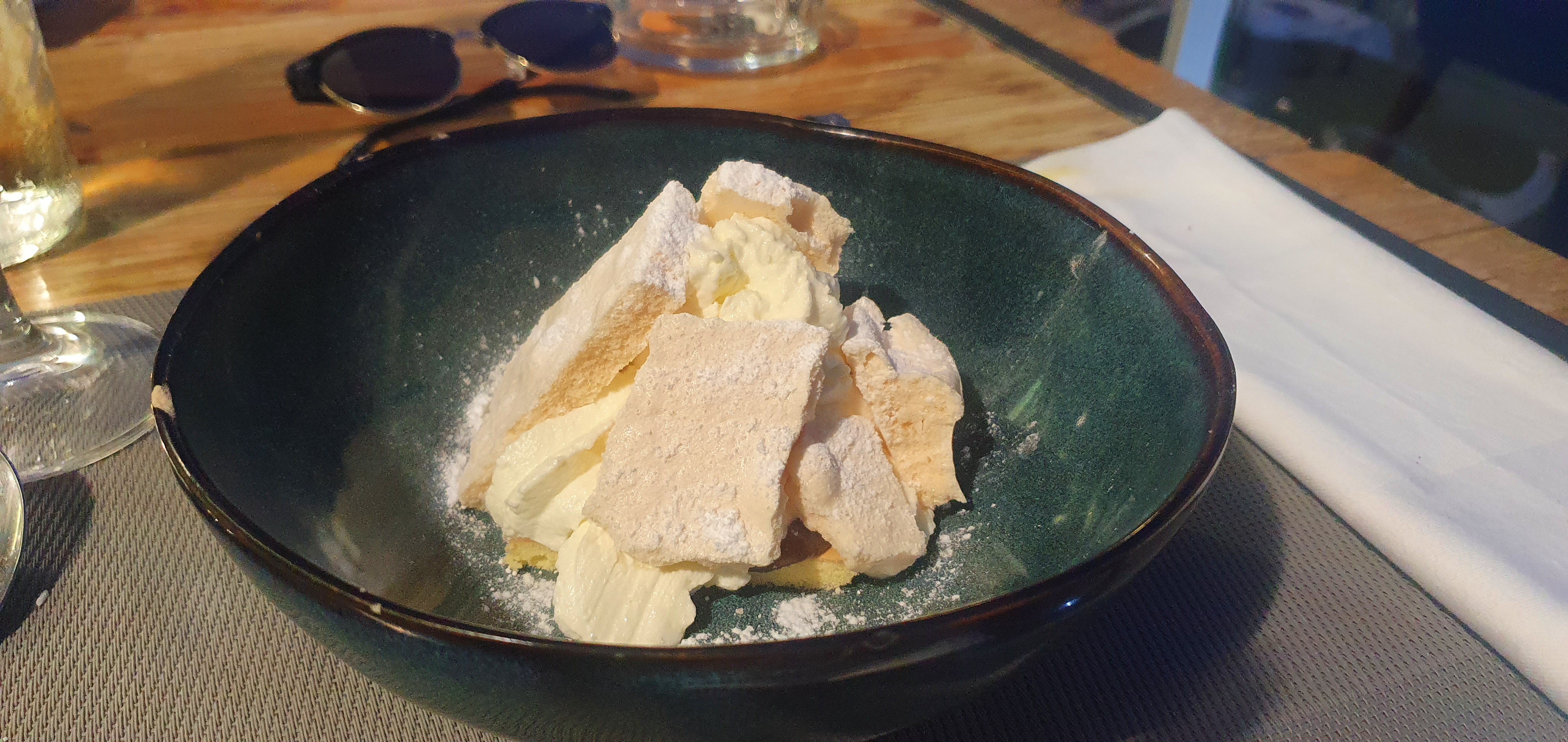 Situation idyllique entre mer et port Équipe sympathique Repas délicieux et goûteux Bravo en cuisine A recommander tout simplement ! Photo du dessert, j’ai oublié de prendre des photos de l’entrée et du plat 😩