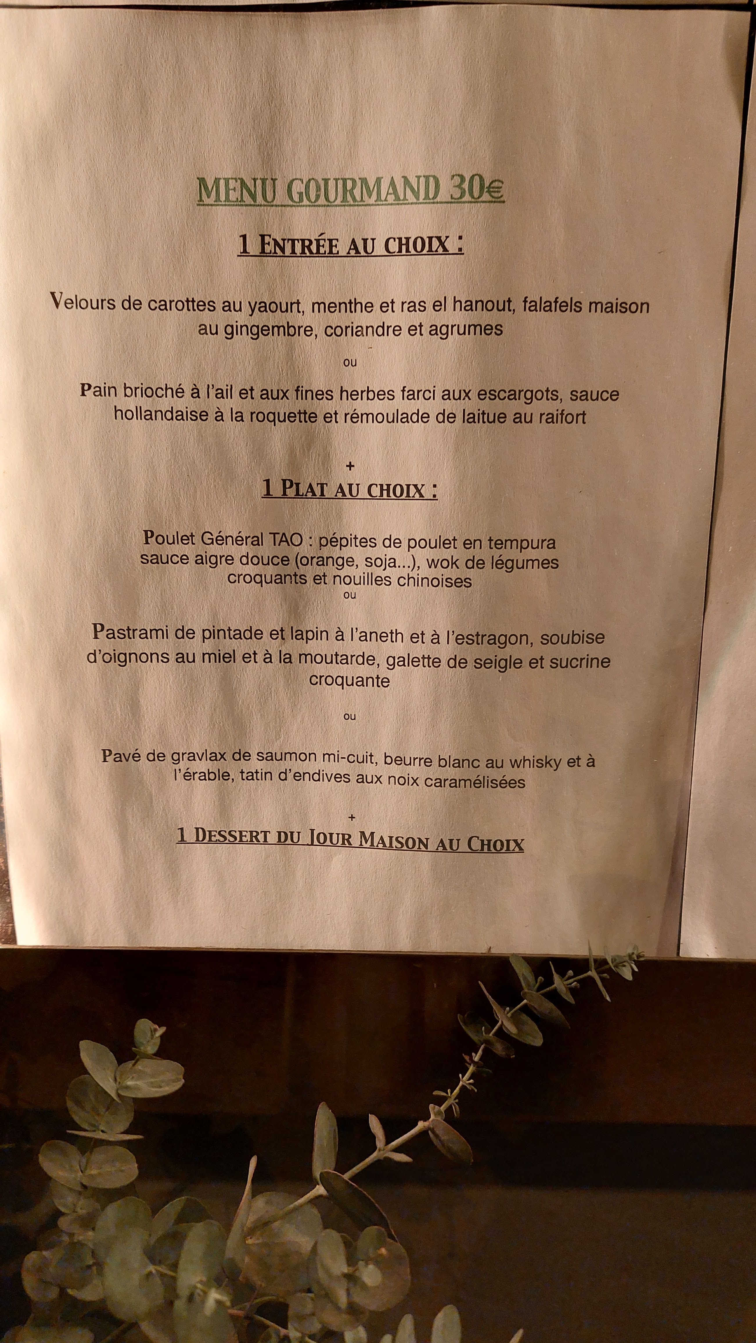Ont adore!! Le chef ne travail qu'avec des produits frais et change régulièrement de carte. Un délice pour les papilles! Des plats originaux et raffinée à un prix très abordable! Ils ont également une belle carte de vin en bouteille ou au verre!
