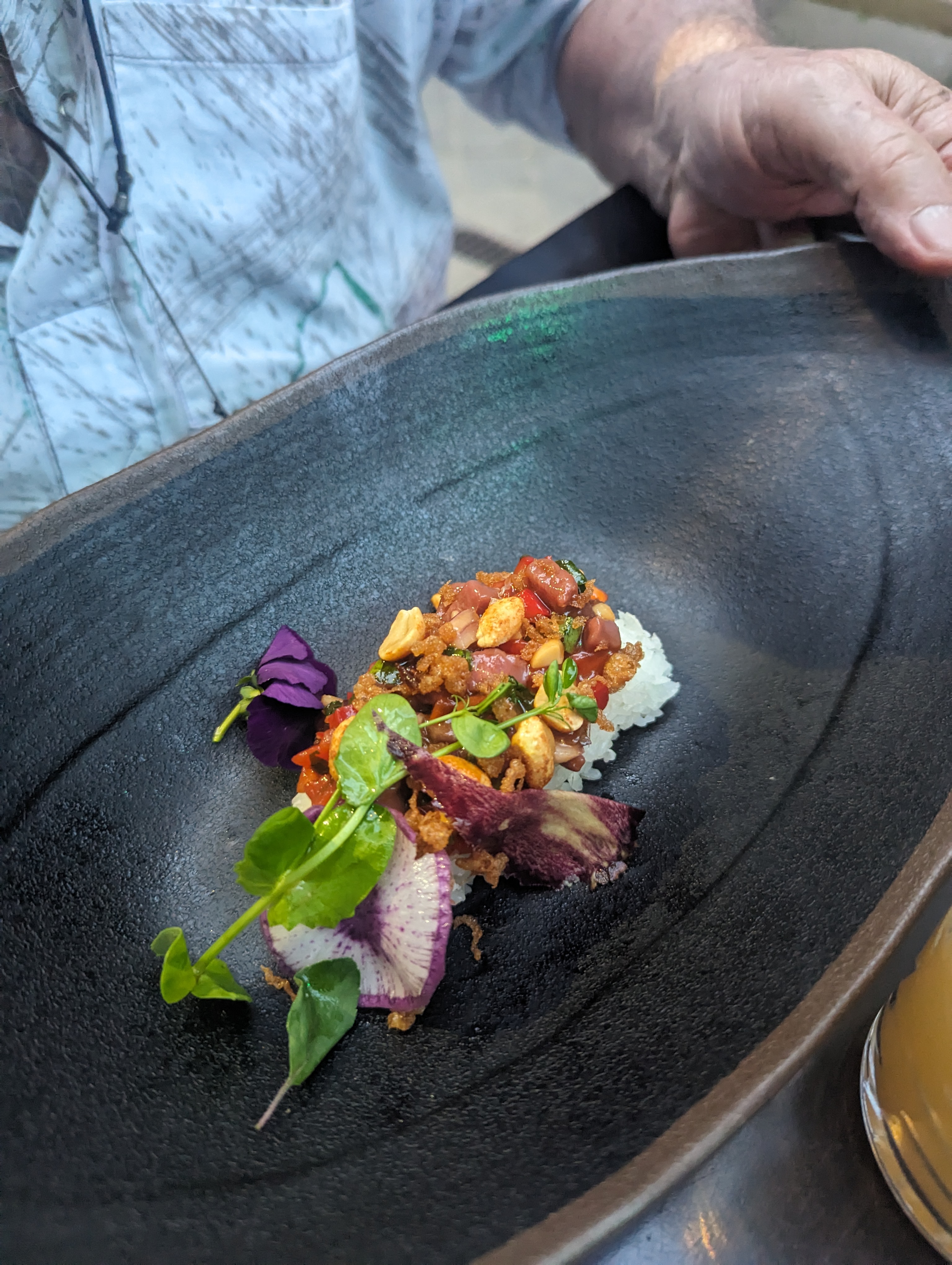 Tout a été parfait. Accueil très sympathique. Excellent et beaucoup d'imagination pour le mélange des saveurs. Excellente expérience. A bientôt. EA
