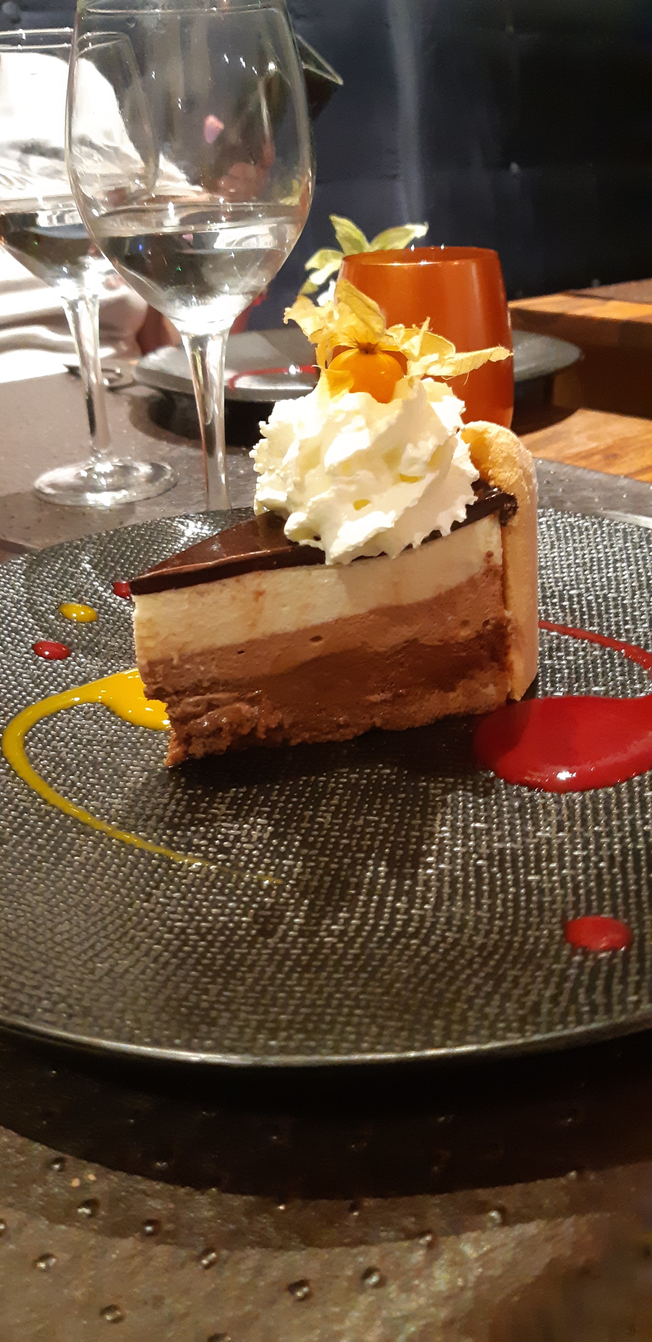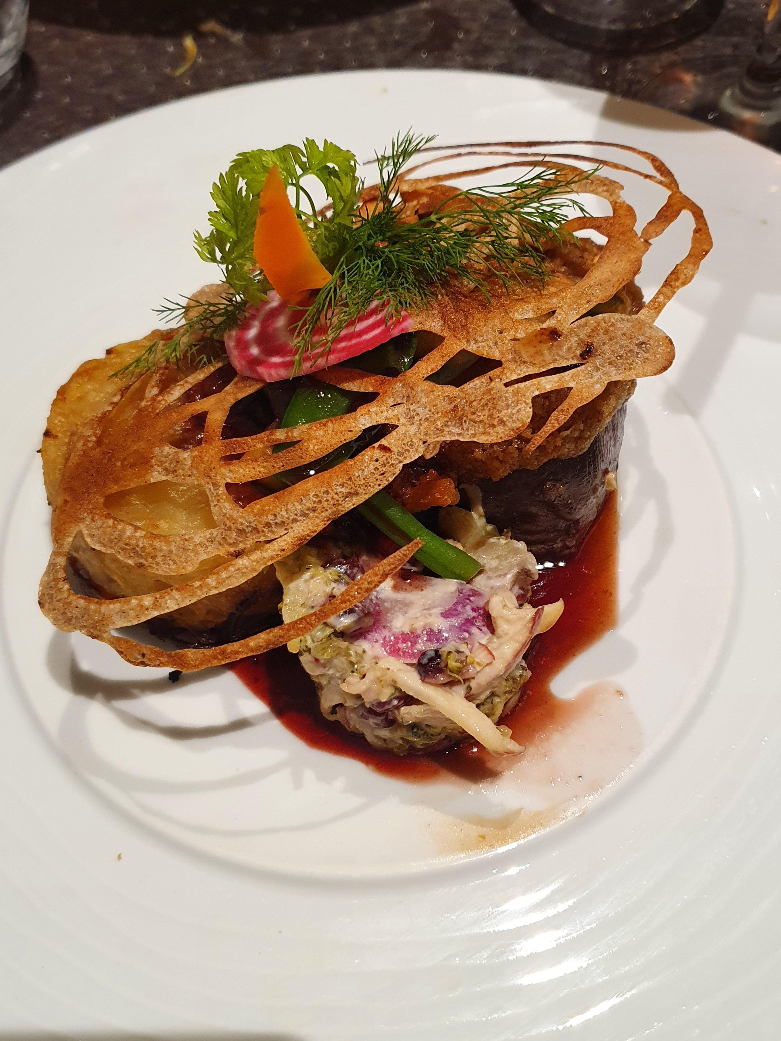 Les plats étaient originaux, beaux et bons. Le dessert était plus classique.