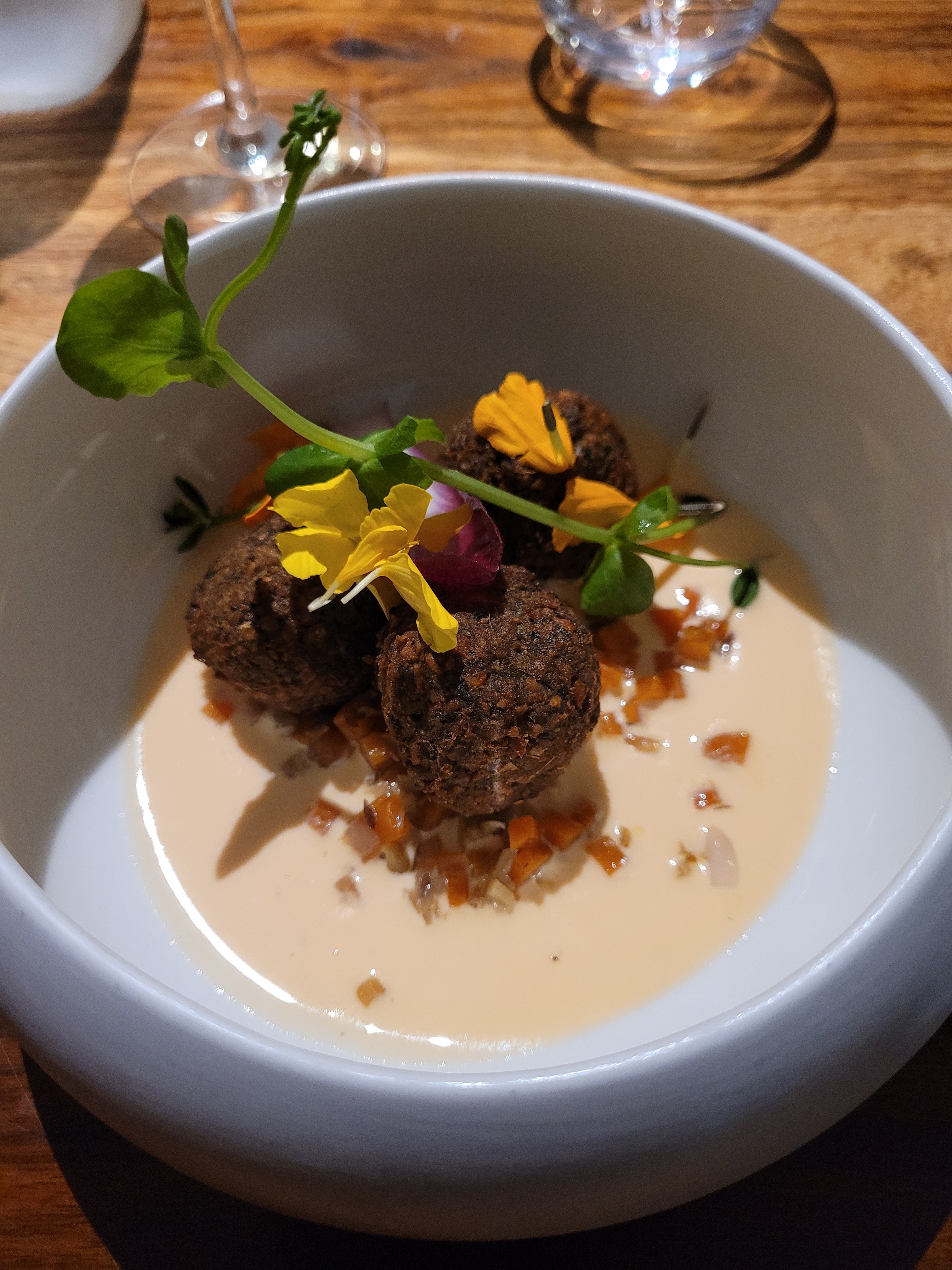 Excellente cuisine, originale et travaillée. Des mélanges de saveurs inattendues et de magnifiques trouvailles. Les prix sont vraiment raisonnables en regard de la qualité des produits et de la préparation ! Le service est très sympathique 😊 Une très belle découverte pour nous qui étions de passage dans le coin.